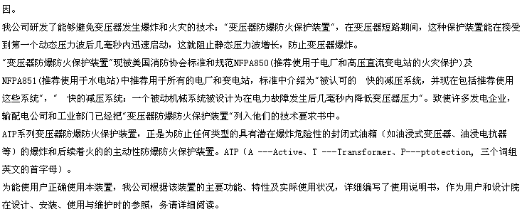 ATP型变压器防爆防火保护装置