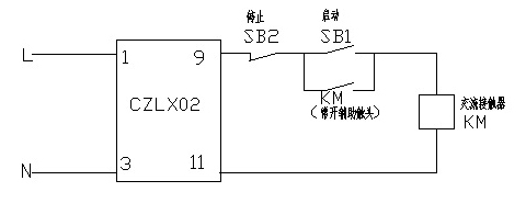 防晃电模块接线如上图所示,火线零线进线直接接在模块的1和3号端子上,模块的输出端11号端子接在停止按钮的前面, 13号端子连接接触器。