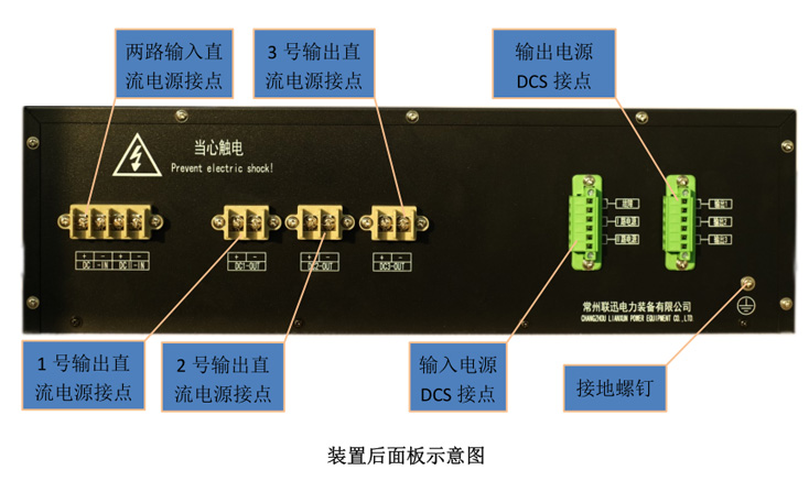 4、 输出直流电源可根据用户需要分别输出 1~3 路直流电源,既一个双电源切换装置可带1~3 个控制单元;